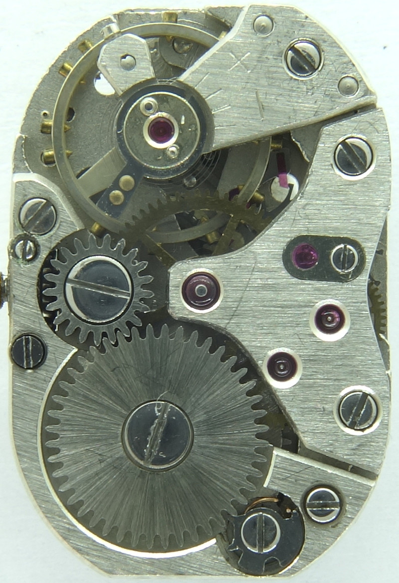 A rare specimen of the elongated 5 1/4 ligne form movements is the AHO 555 from Pforzheim im Germany, which was made around 1960.