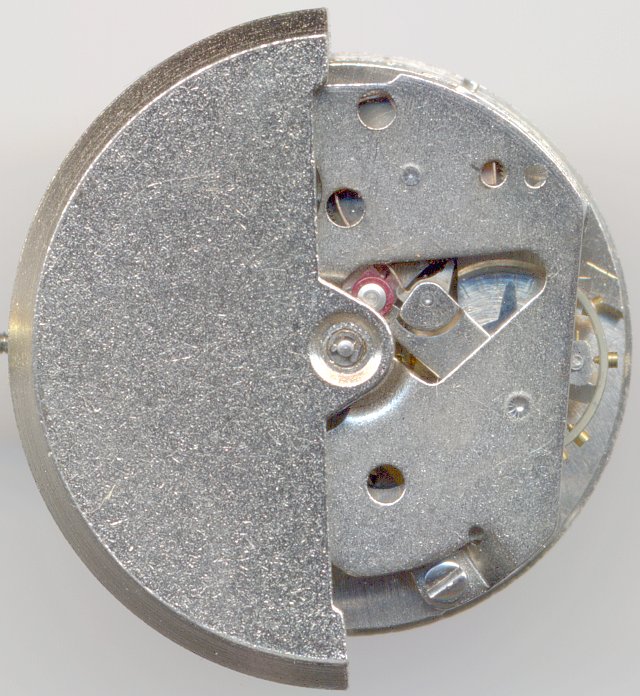 As you can see, the selfwindig mechanism is pretty crude and the oscillating weight is just axle beared and will scratch on the movement or on the back sooner or later.