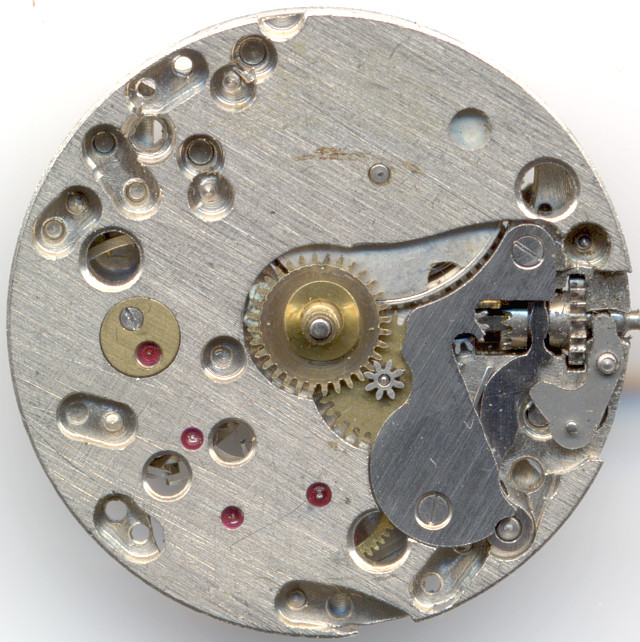 The setting lever spring, which is broken on the specimen shown here, has got a typical shape. You also see very well the yoke winding system of this movement.