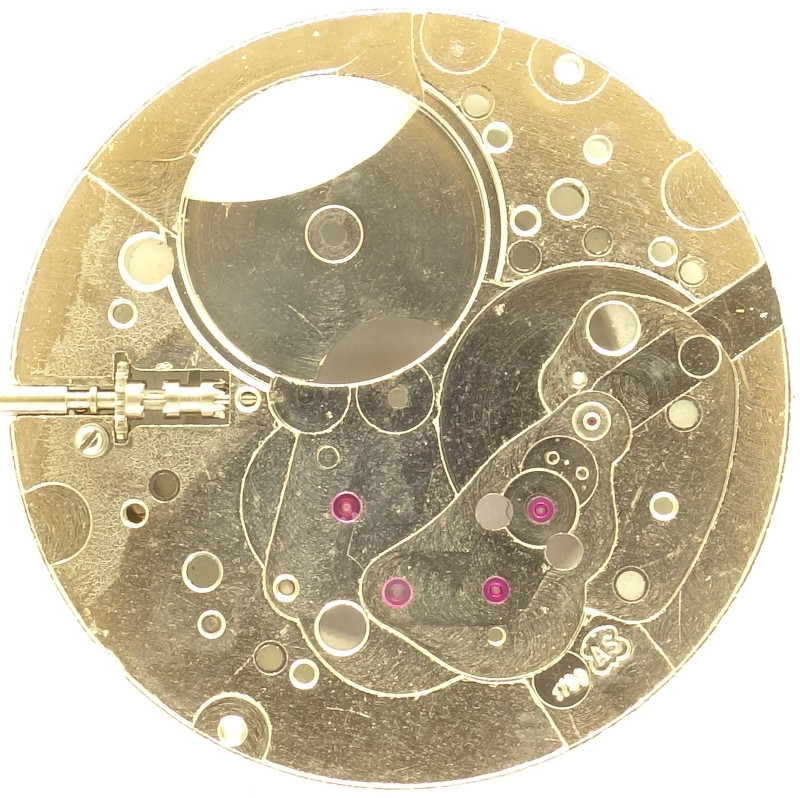 The AS 1759 shows the familiar view on the dial side, with the Incabloc shock protection on the left and the yoke winding system on the right.