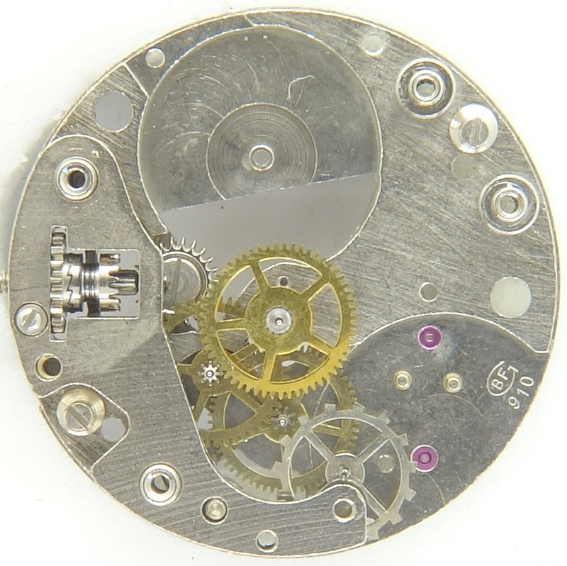 In the early 196os, the swiss pin lever ebauche manufacturer Baumgartner, also known under their abbreviation BFG, released their caliber Baumgartner 910.
