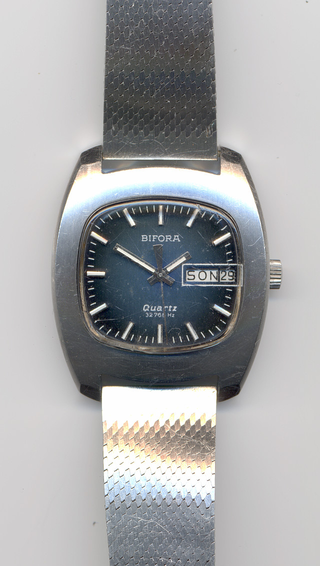 Since the early 1970ies, Bifora (Bidlingmaier in Schwäbisch Gmünd, Germany) also offered battery-powered movement, the smallest of them was the caliber B10, a ladies’ watch movement with a diameter of 8 1/4 lignes. It was clear, that native electromechanical movements are just an intermediate step to quartz movements, and so in 1973 already, the first inhouse quartz movement was released, the caliber B12, which based largely on the electromechanical predecessors (B10 and B11).