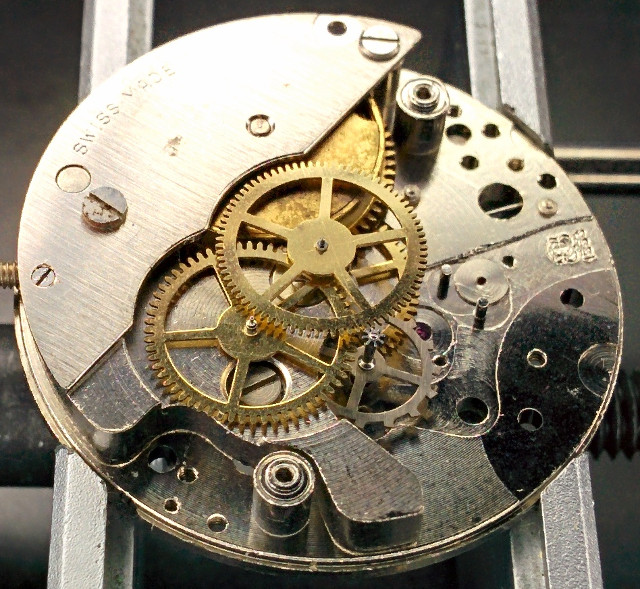 The cap jewels give the impression of a costly movement, however the cap jewel of the lever axle (at 8 o’clock) is useless, since you never oil the lever axle bearing and hence need no cap jewel for retaining the oil here.