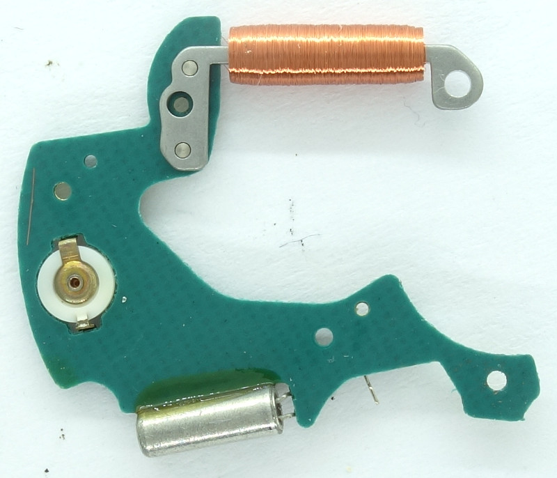 The stepper coil, whose fragile wires are soldered onto the PCB, is fix attached to the electonics plate.