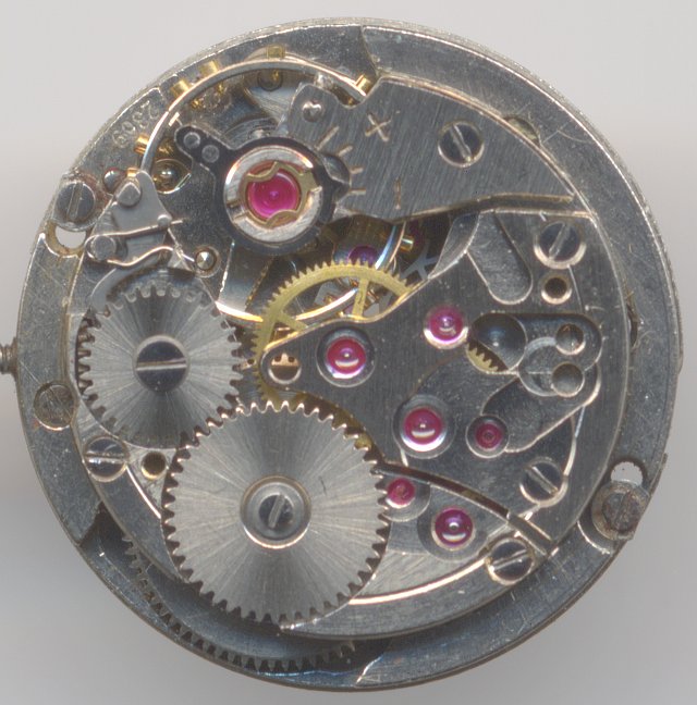 The gear construction was done by most modern knowledge. The center second hand was directly driven, while the minute hand was driven by the decentral driving wheel. The cannon pinion however used the typical ETA construction with the large moveable gear.