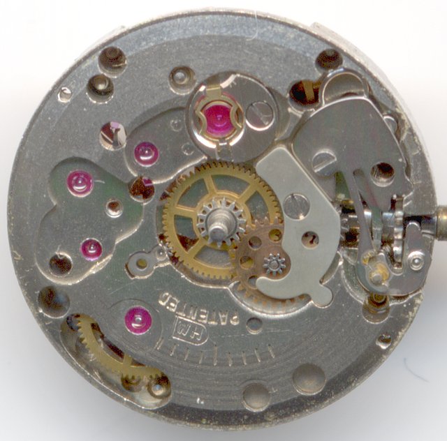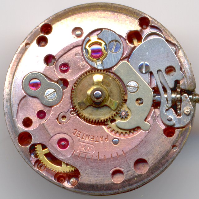 The speciality of this movement is, that its minute hand is no longer driven directly, but indirectly on the dial side by the train of second wheel. The first wheel stays in contact with the mainspring barrel and drives the whole movement.