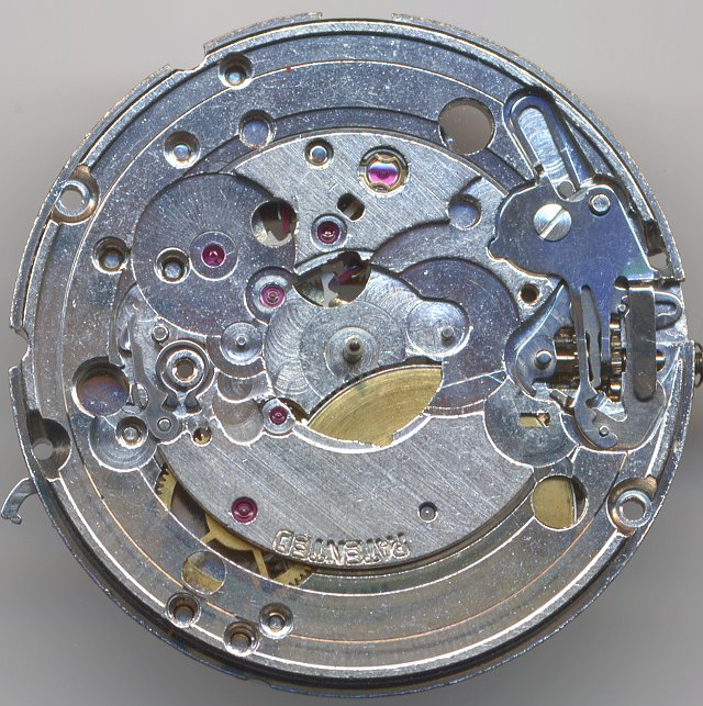 The date mechanism advances the date instantly and allows manual correction on the second (of three) crown positions. The driving wheel is even jewel-beared!