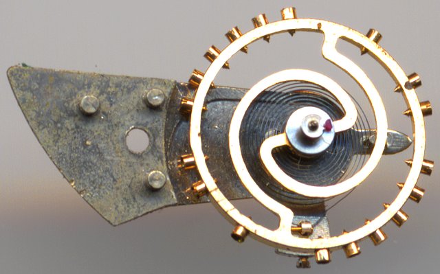 Here you can see the very long slanted balance legs, which hold the balance ring elastically and absorb shocks. Because of this, the balance wheel is not shock protected.