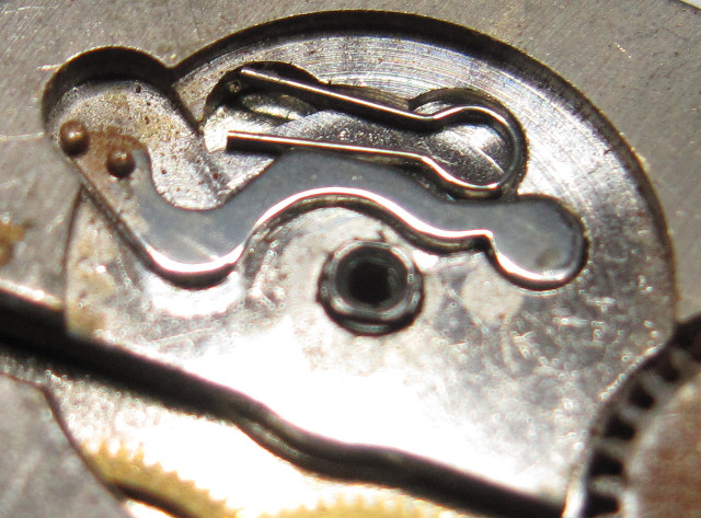 An interesting detail is the ratchet, which is a very simple and modern construction, consisting of only two parts, a simple spring and a lever. Both are not fixed and located below the ratchet wheel.