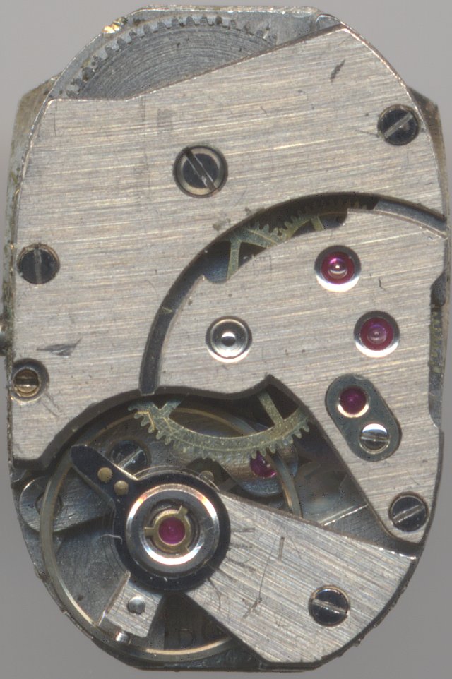 This movement uses a traditional anchor escapement with Felsa-typical transparent anchor palettes, but the rest of the movement, the rather simple Trishock shock protection system, the missing regulator hand and the rocking bar winding mechanism below the that make one wonder, whether ladies’ watches did not deserve the same quality as mens’ watches.