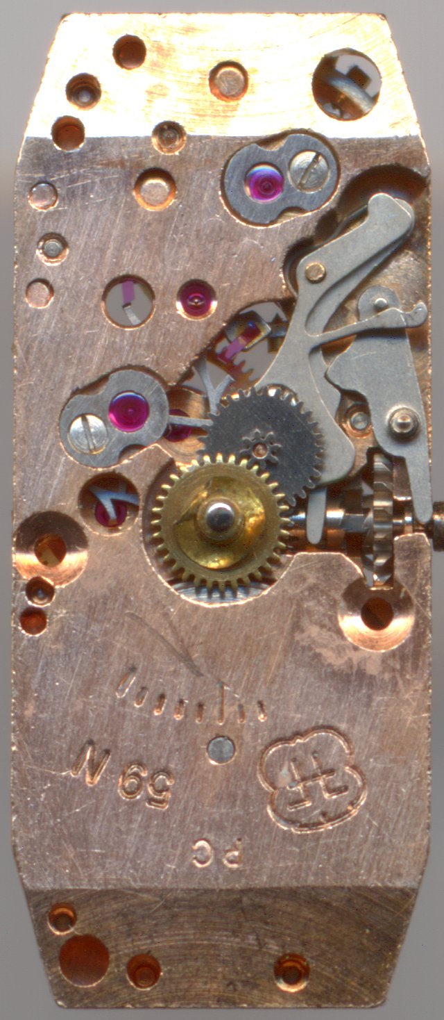 The FHF 59N is one of the smallest form movements ever made, and besides this the absolutely smallest baguette-type movement with only one layer (compare Omega 690.