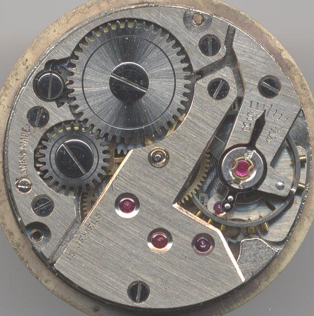 The caliber 70 ist another very nice 10 1/2 ligne movement from the swiss Fabrique d’Horologerie de Fontainemelon. As other FHF movements of that epoch, it pleases with its well arranged layout, with its good manufacturing with bevelled angles, clean engravings (on the dial-side, too) and grindings. The nickel screw balance is of course beared between two Incablock shock protection bearings and has got a long regulator arm.