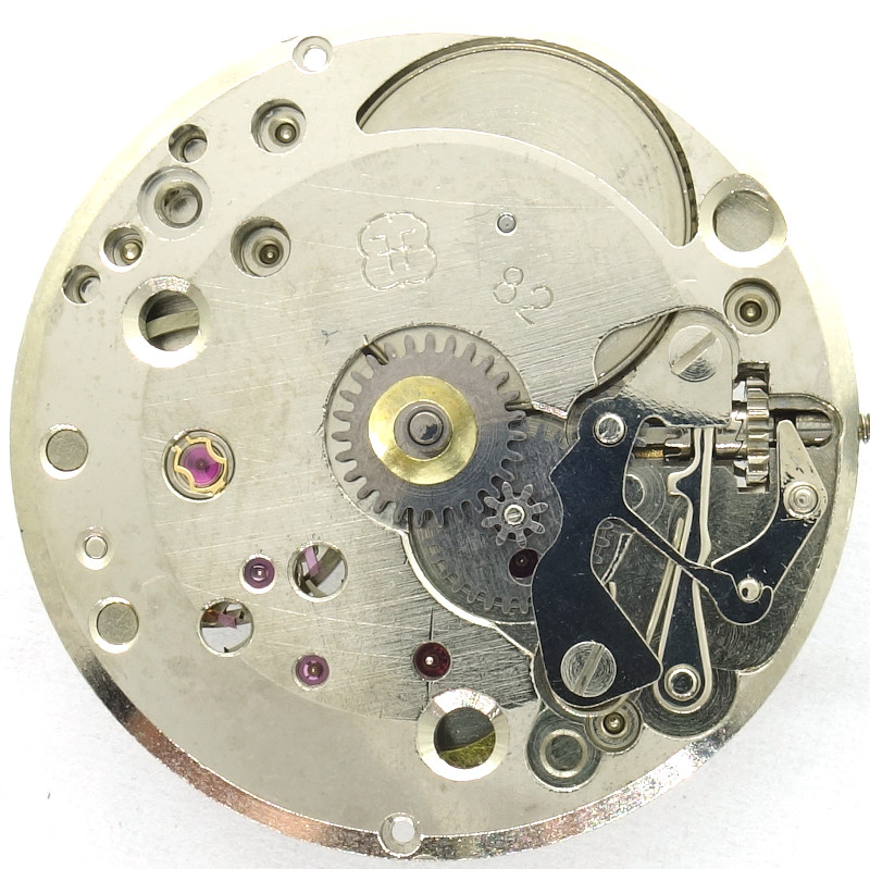 A rather late movement is the FHF 82, a 10 1/2 ligne windup movement with decentral seconds indication at 6 o’clock. When the movement was launched around 1970, this kind of indication was already outdated for decades.