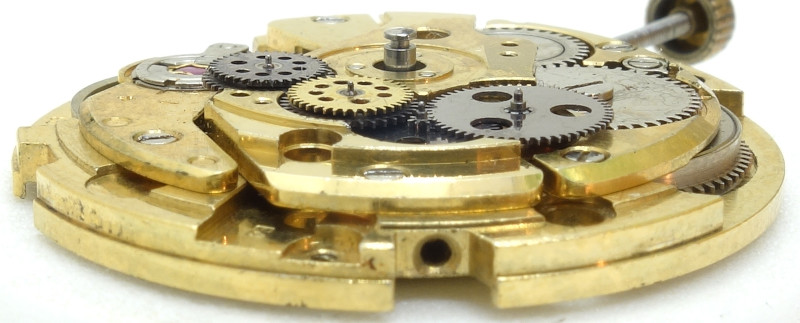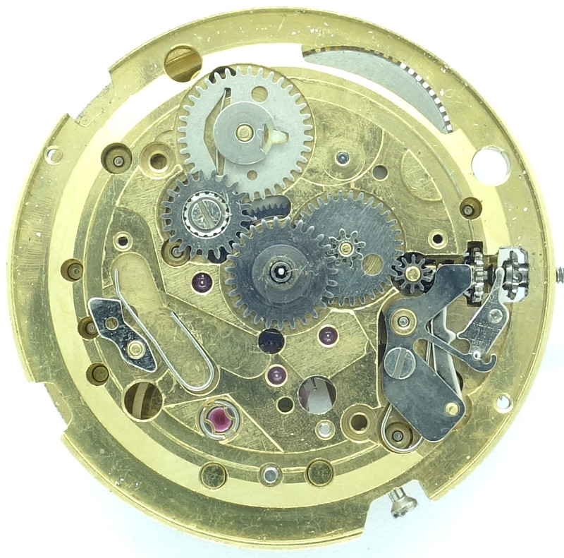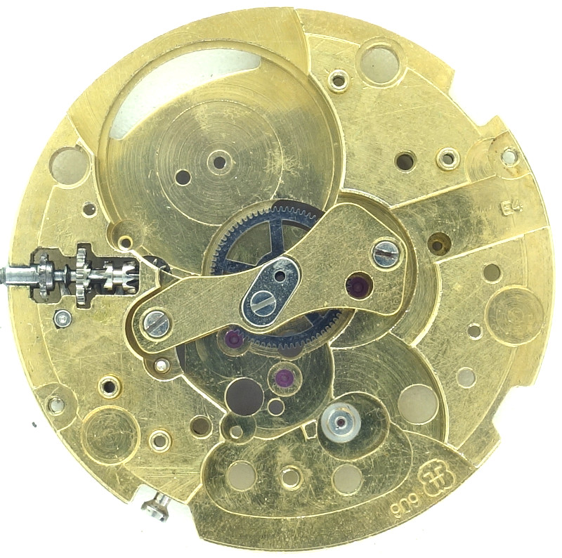 FHF did not take any risks when developing this selfwinding mechanism. As on the common ETA movement, a pawl changer was used, with the disadvantage, that its gears spin very fast when the movement is manually wound, just like on the ETA selfwinding movements.