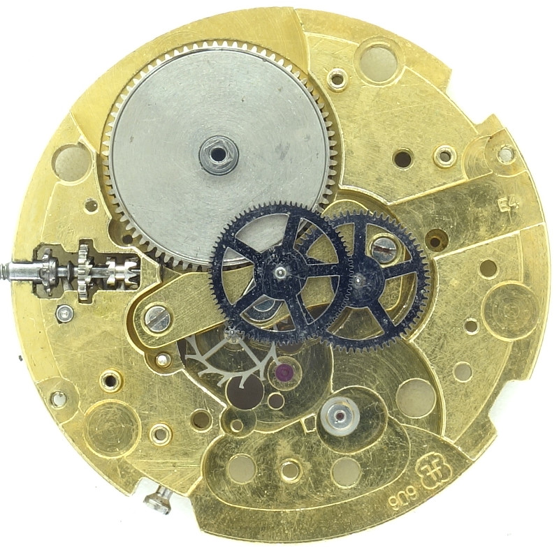 Without oscillating weight, the construction reminds stronly of those of the ETA. No wonder, because at that time, both, ETA and FHF were under the roof ot the Ebauches SA.