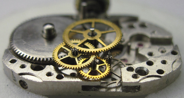 The Förster 630 has got a rocking bar winding system. The click mechanism is on the dial side and consists of a well made ratched and a spring, which is hooked onto it.