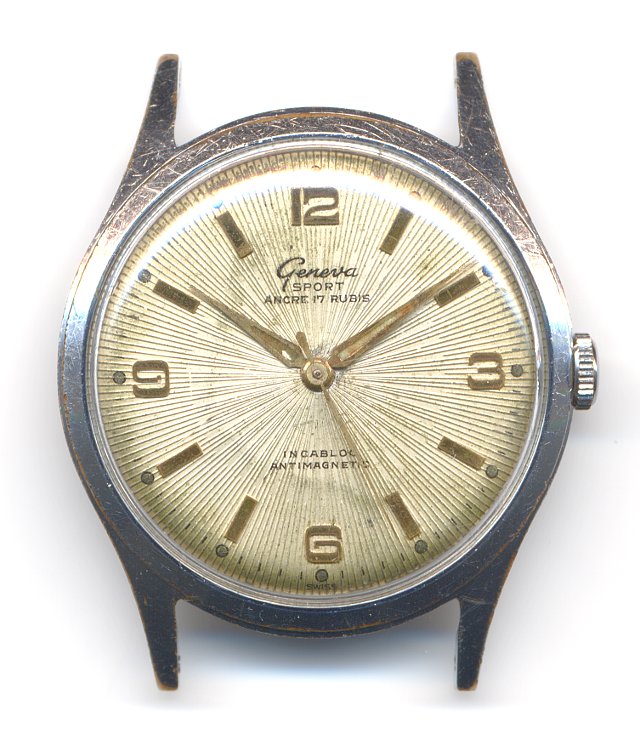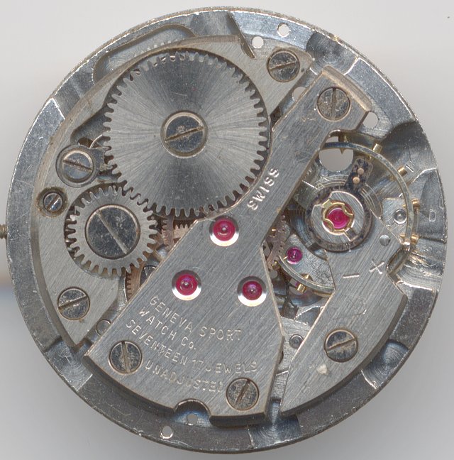 The Geneva Sport 41 is a rather simple made swiss pallet lever movement, which debuted around 1960. It was equipped with 17 jewels and an Incabloc-beared screw balance, the minimum standard for a good swiss movement.