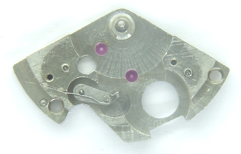 Interestingly, the bearings for the lever and for the escape wheel show preparations for cap jewels, but the only cap jewel, which you can actually find, is on the bearing of the third wheel, where it is far less useful. Why? Probably a confusion by a former watchmaker?