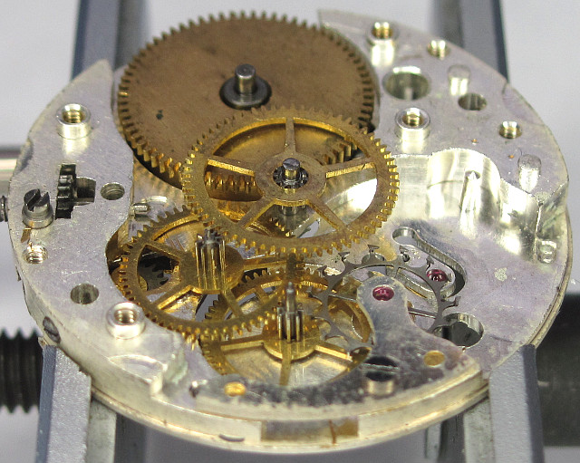Even when the Jeambrun 23C was probably quite cheap at that time, its execution with a non-pillar construction and bearing rubies for balance and escapement wheel weren’t usual for low-end movements at that time.