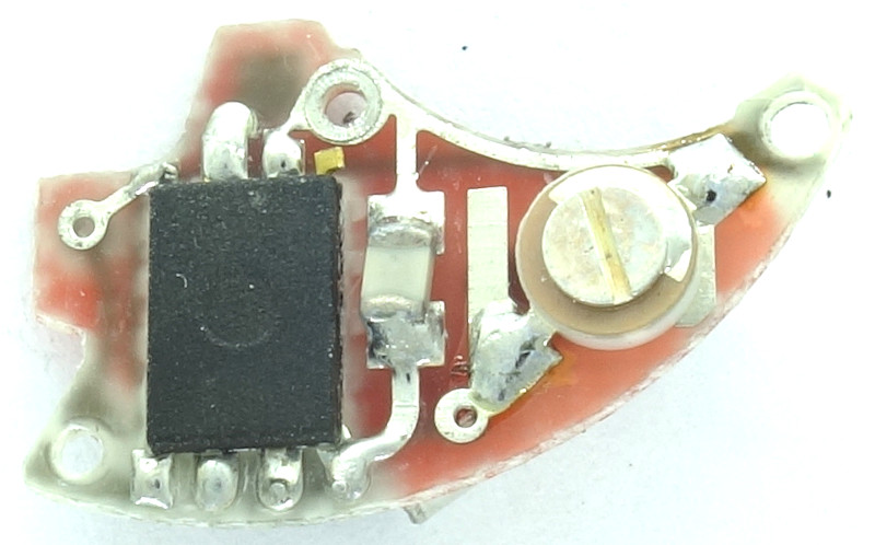 The basic structure of the electronics module remained the same during the whole series production era and consists of an IC (unlike the predecessor no longer made by NEC, but by the Munich semiconductor producer Eurosil), a capacitor, a trimmer capacitor and a 32 kHz quartz.