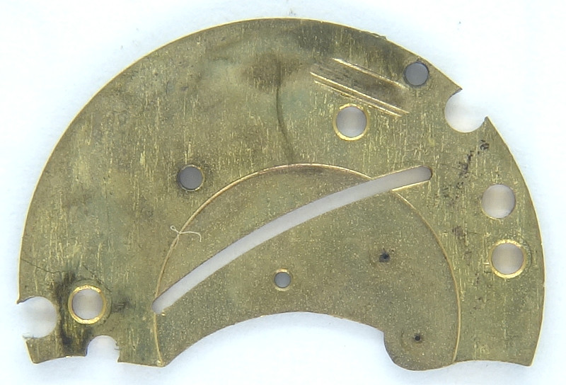 At 8 o’clock, there’s the metal cap plate for the dial side balance wheel bearing. It causes, that metal runs on metal, resulting in high wear and bad precision.