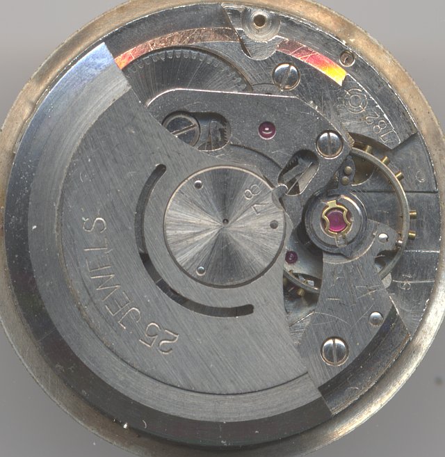 The movement shown here was a rusted ruin because of a large water damage. The complete winding mechanism was so rusted that it did not move at all, and the selfwindig mechanism was almost dead, too. Only with a extensive restauration, the watch could be brought back to life again and today, only the dial tells of the water damage. Sometimes, it’s really worth investing some time in a “ruin”, especially when it has got such an interesting movement inside.