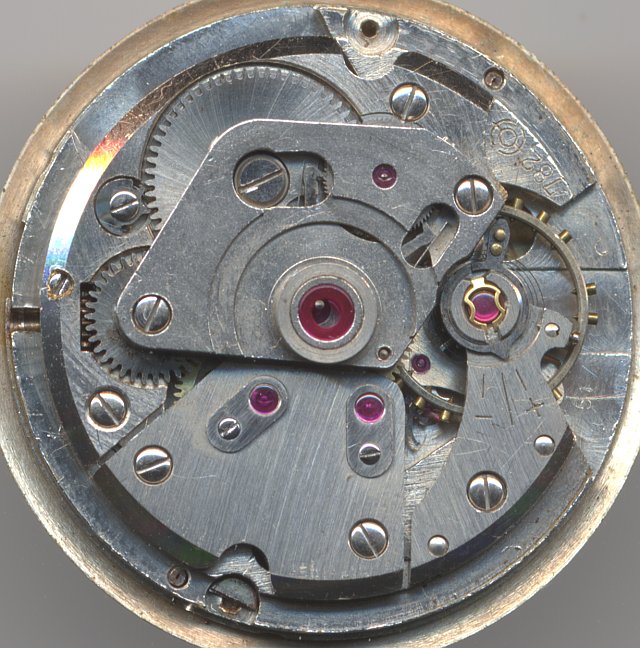 The Otero 782 is a rather rare german selfwinding movement, which uses an excenter mechanism for winding the watch. This mechanism is so genius, that it only uses a single gear and two spring-secured clicks. Unlike a conventional direction changer, this mechanism has almost no neutral position at all and winds the watch very efficiently. On this movement, there’s also the patented Otereotest mechanism, which allowes the watch to contain a normal mainspring without detachable (and in this era sometimes problematic) ends: When the watch is fully wound, the Oterotest mechanism decouples the rotor from the mainspring and let it spin free, thus preventing the mainspring from overload and a jumping balance.