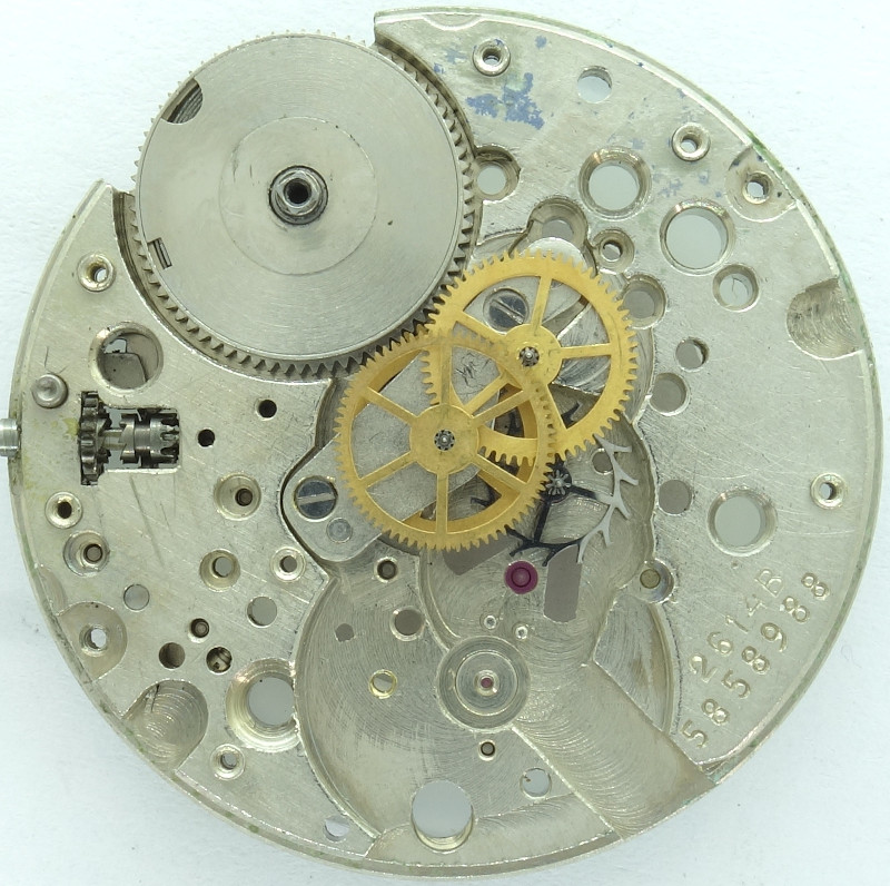 This 11 1/2 ligne windup movement from Russia, the caliber Poljot 2614B which is - details are unknown, sorry for that - the further developed Poljot 2614, has got an interesting construction, and is also aesthetically very nice due to its strict geometrics.