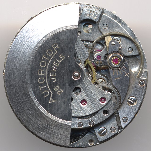 The PUW caliber 1361, a 25 jewel mens’ size bidirectional selfwindig movement differs from its predecessor, the PUW 1261 only in a few details, mainly on the dial side.
