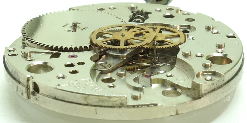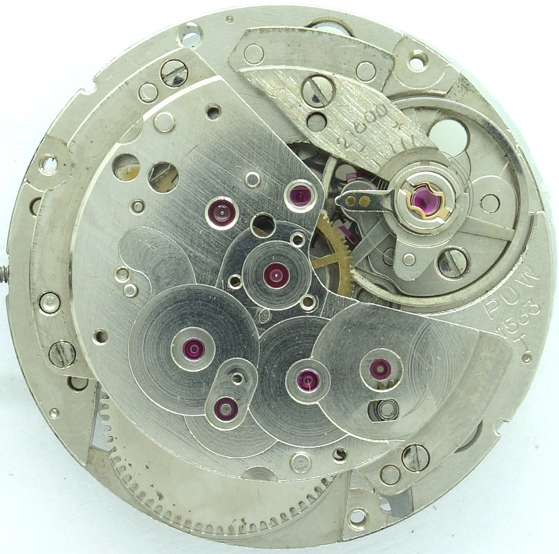 Unlike ETA, PUW always used the classical gear train with a directly driven center minute wheel. Here, it is even ruby-beared.