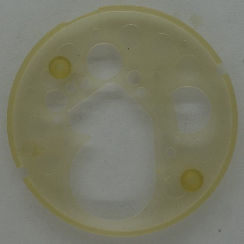 Since the weekday disc has got its teeth on its under side, it builds a bit heigh and thus must be beared higher to be on the same level, as the date ring. This is the most important function of the plastic spacer.