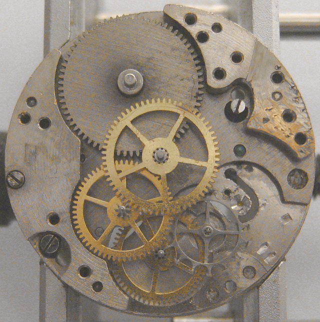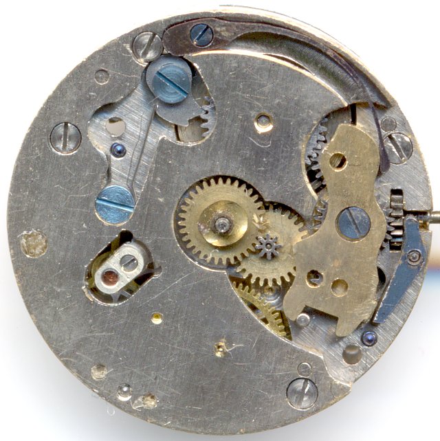 A notable fact on this movement is, that besides it simple construction, it shows details of “better” movements, such as blued screws on the dial side.
