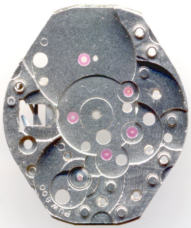 The PUW was produced in the mid/late 70ies. It is a ladies’ watch form movement with directly driven center second and uses an odd click spring mechanism.