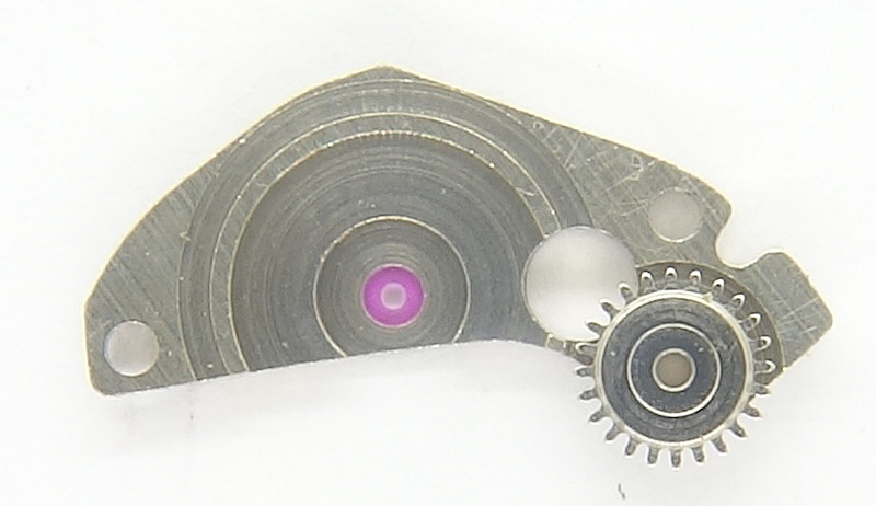 The gear train uses, because of the directly driven center seconds, unusally large gears for this kind of movement.
