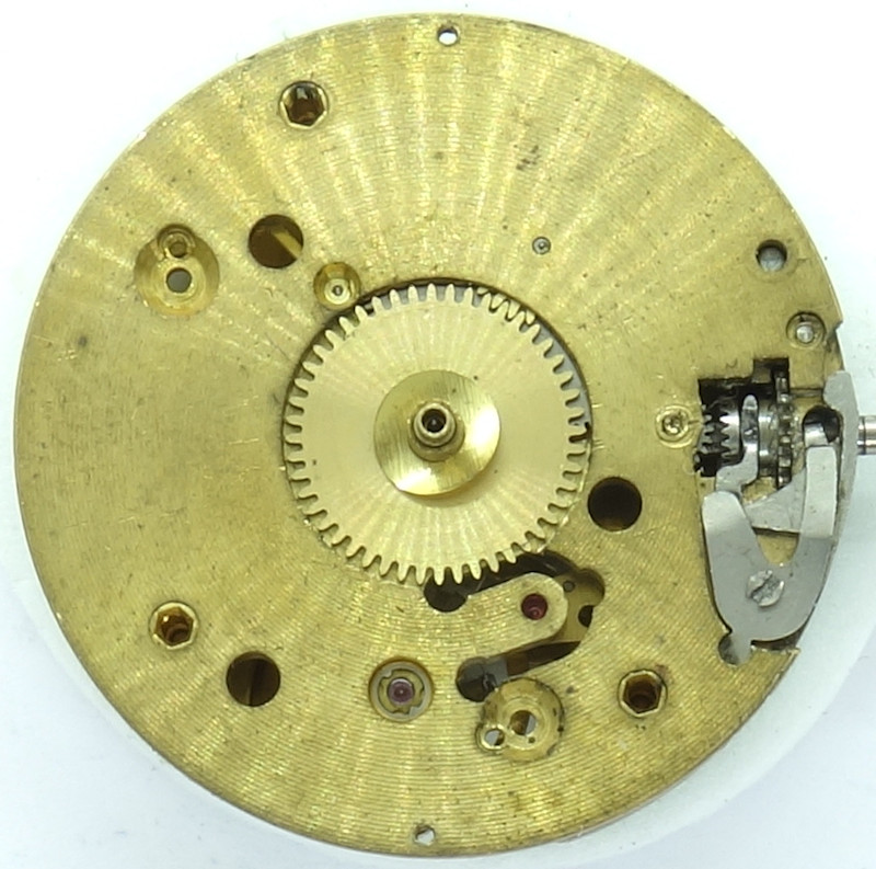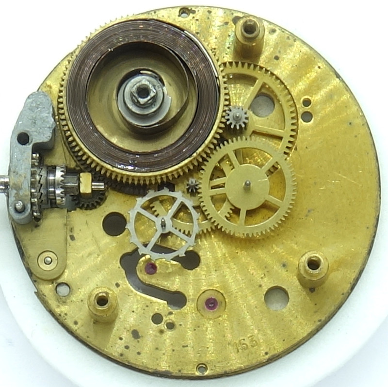 The large (it has got a diameter of 12 lignes) Rego 153 from then 1950s is a pillar construction of Roskopf type with a center seconds indication and it was equipped with 15 jewels, which was unusual for a Roskopf movement.