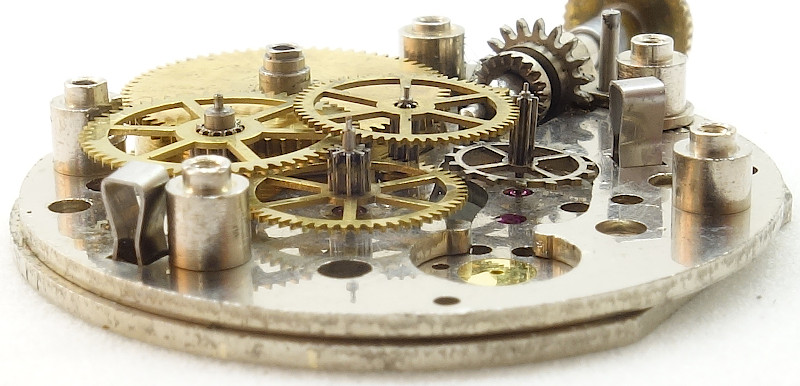 On the base plate you can see, that it is a pillar construction, but a pretty well made, especially, since all important bearings contain rubies.