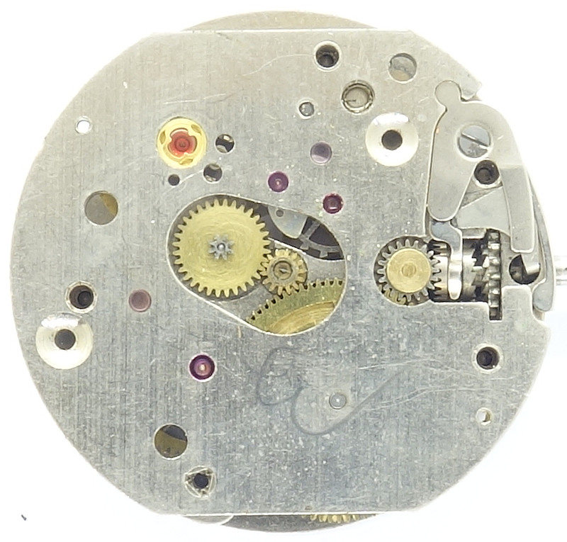 On the dial side, you can also see the simple, but efficient yoke winding system. It is a very rugged construction and will certainly work without problems for the lifetime of this movement.