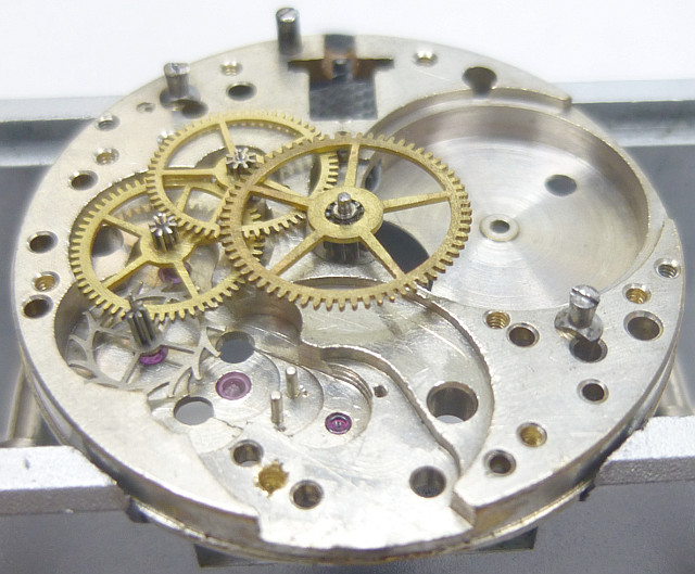 Such a movement from that era is the Silvana 1078, on which you can still see in some details the relationship to a pocket watch movement.