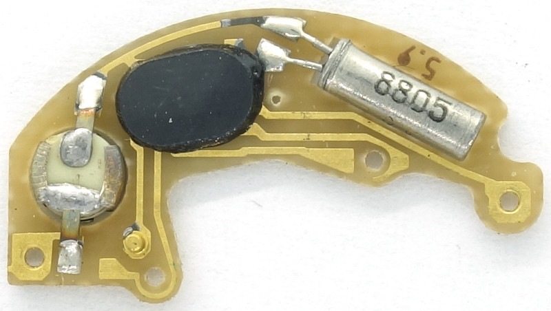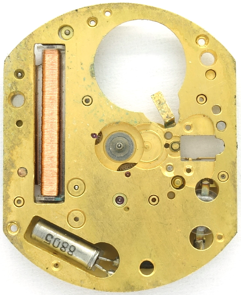 To save height, there are recesses on the motherboard for the battery, the coil of the Lavet stepper motor and the quartz.