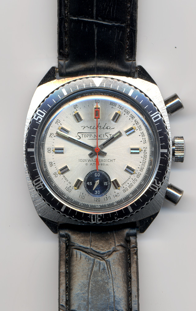 Karl Rexer, the german general imprter for GDR watches to West Germany wanted to add a wannabe chronograph to his portfolio around 1970. This watch should only contain two pushers to stop and start the movement, so this would have been more or less a “fake” chronograph.