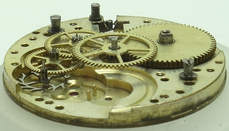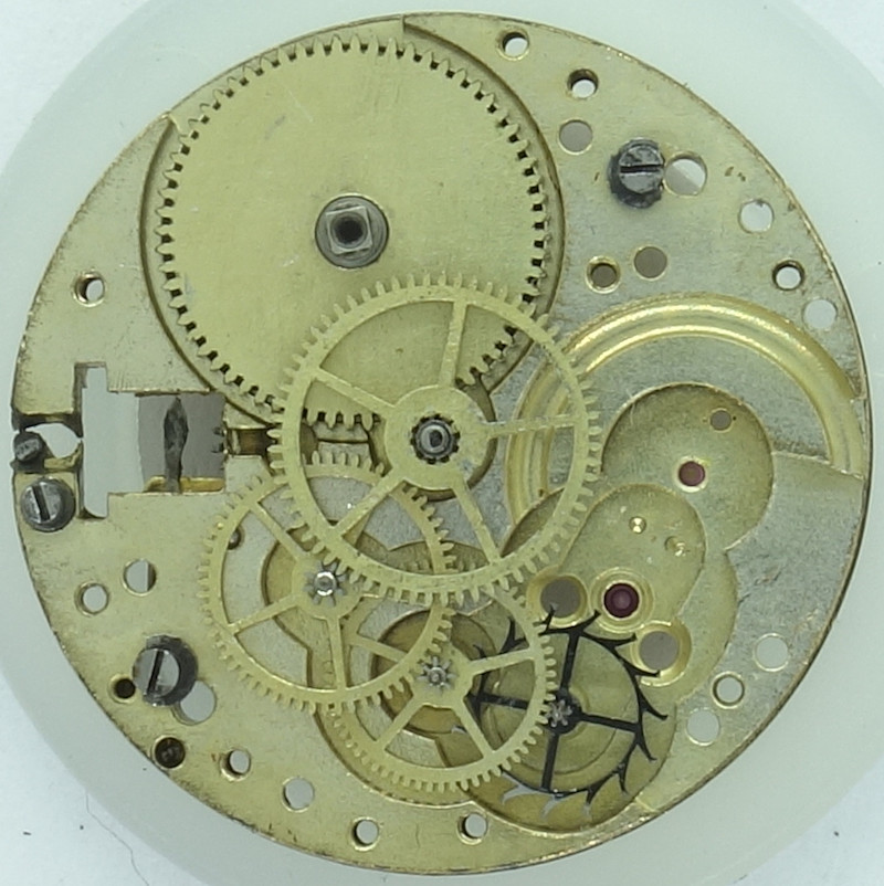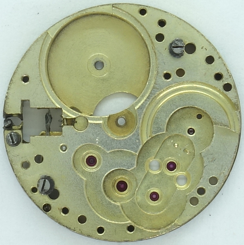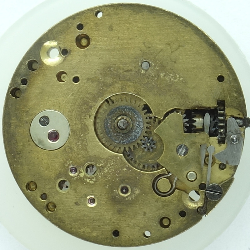 The Urofa 52 shown here is neither marked on the dial side nor on the movement side, but could be identified because of its distict shape of the setting lever spring.