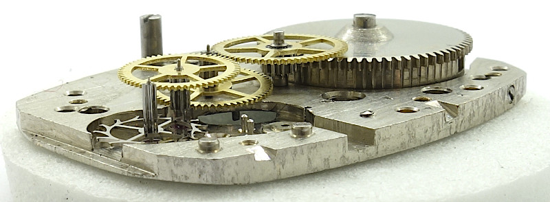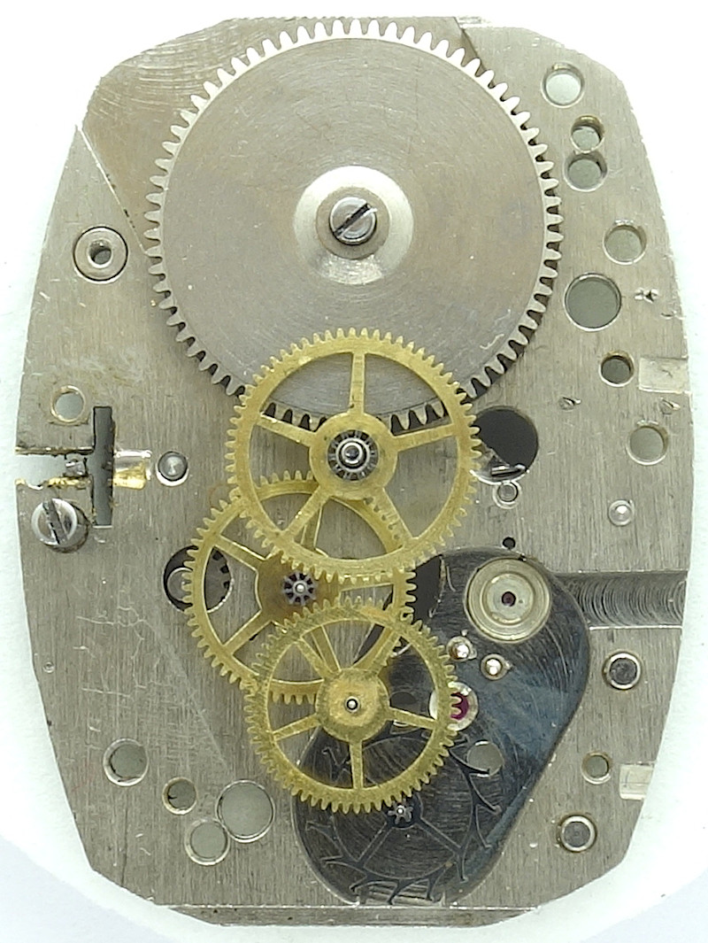 The Usersi 47/11, distictable by the straight edges on the short side, was a rather simple windup form movement with an analogie date indication, but at least with a pallet lever escapement.