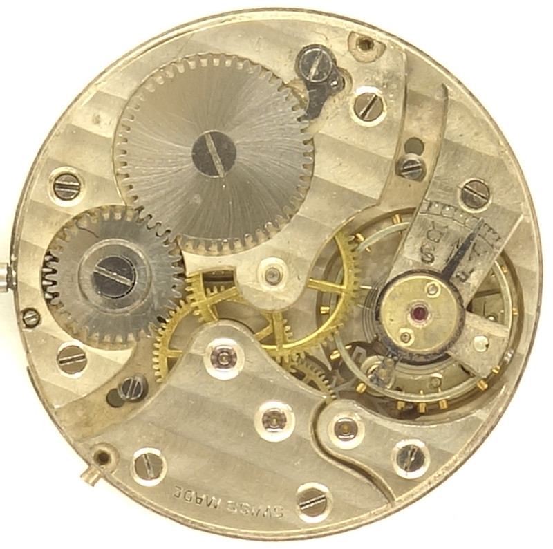 The yoke winding system as got a very characteristically shaped setting lever spring, but in none of the available movement catalogs, a movement with a similar setting lever spring could be found.