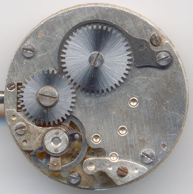 The 10 1/2 ligne, unmarked and not having a caliber number, Würthner movement (in the literature, it is known as “Würthner 10 1/2”) is a simple constructed pin lever movement, which is made in a similar construction as compareable movements of Baumgartner or Brac. The only essential difference is, that the Würthner movement has got one additional transmission gear.