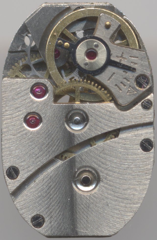 A rather rare cylinder form movement is the quite tiny AS 1101, which was used in ladies’ watches, probably in the 1940ies. These kind of movements already show signs of modern pallet anchor movements of the same time (shaping of the briges, silver colored plates, dial footer screw on the side of the movement) and were probably made as cheap alternatives to pallet anchor movements.