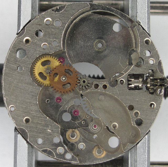 Although the minute pinion is not ruby-beared, the two ruby-beared additional transmission steps lead fo a total of 17 jewels.