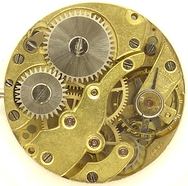 The 10 1/2 ligne windup movement AS 324, made in the 1920s was part of the 302 caliber series, which came in about two dozen different designs, all of which differed only in the shape of the bridges and in details like the setting lever.