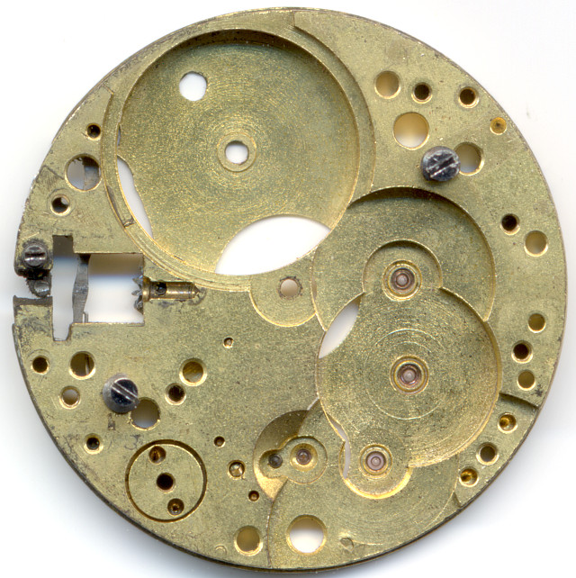The complete balance system including cock and both bearings are made as a detachable unit for servicing. You see this on the bottom of the dial side.