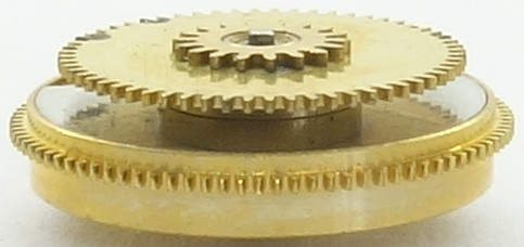 The ratchet, which is located on the movement side, is a pretty genious construction: It consists only of one single part, a click, which is also its spring, beared in a depthing on the barrel bridge, covered by the ratchet wheel.