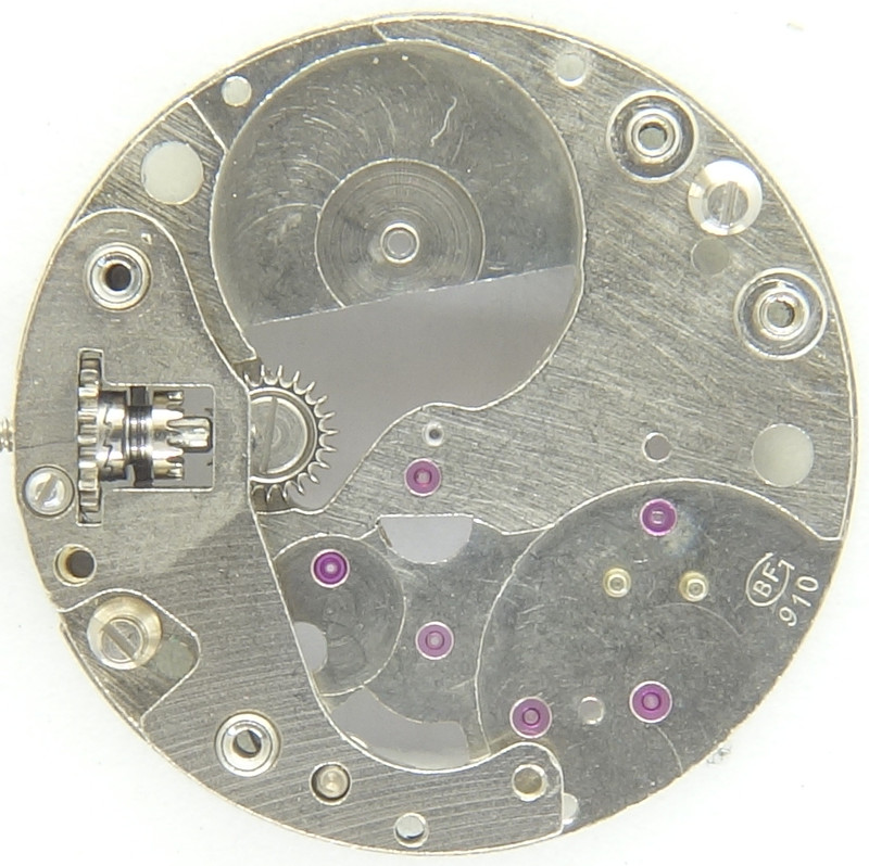 In the early 196os, the swiss pin lever ebauche manufacturer Baumgartner, also known under their abbreviation BFG, released their caliber Baumgartner 910.